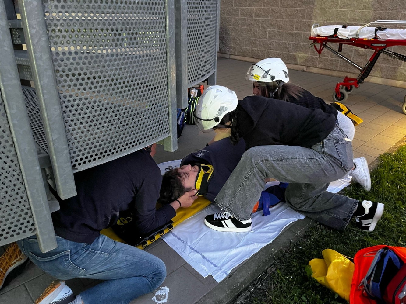 Il Corso dei Nuovi Volontari prosegue a pieno ritmo con la parte riservata in particolar modo alle simulazioni d'intervento su un paziente traumatico... e le simulazioni sono anche questo, preparare i ragazzi ad intervenire nelle situazioni meno comode che possono succedere nella vita vera!